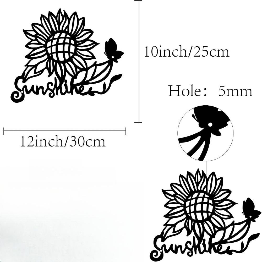 Metal Sunflower Butterfly Wall Art Iron Sculpture Home Garden Decor Black 12x10 Inch