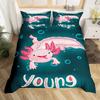 Comforter Cartoon Pink Axolotl Floral King Queen Kawaii Salamander Bedding Set 3D Animal Polyester Comforter