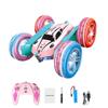 Remote control stunt car toy in a striking pink hue.