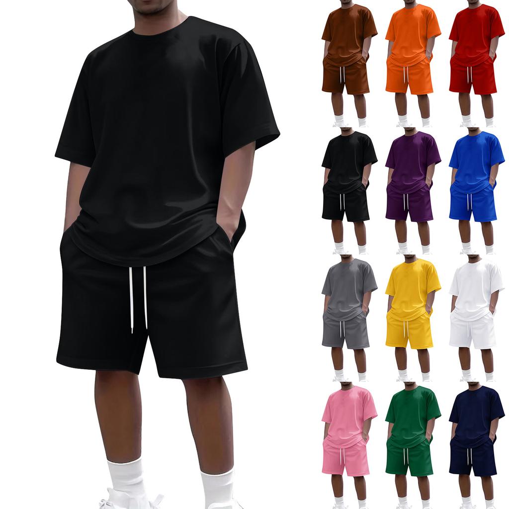 Men's Summer Casual 2-Piece Outfit Round Men's Neck Short Sleeve Tee Shorts Set
