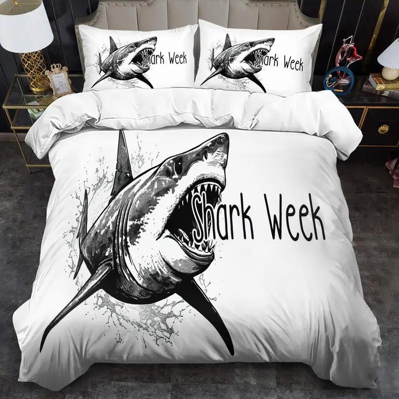Comforter 2/3Pcs Oceanic Shark Bedding Set High-Definition Digital Print Duver 3D Pattern Soft & Skin-Friendly Bedroom