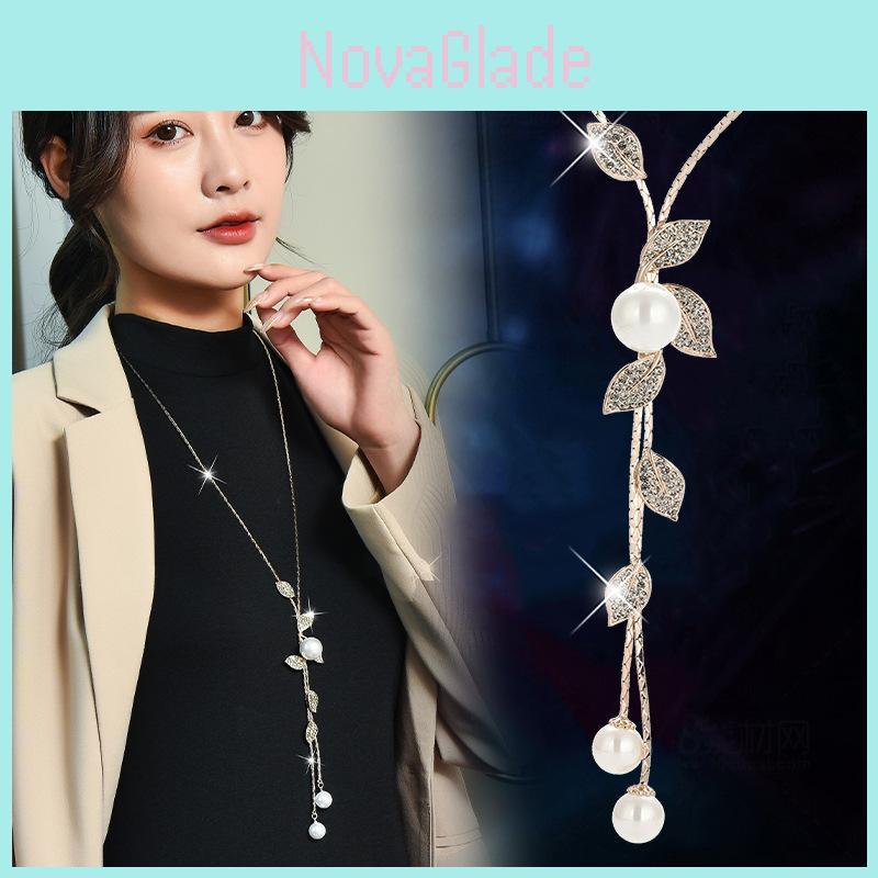 Introducing our exquisite Korean-style Leaf Pendant Necklace, a stunning accessory that embodies elegance and sophistication. Designed for the modern woman, this long sweater chain is perfect for the autumn and winter seasons, effortlessly complementing a variety of outfits. Crafted from high-quality alloy and adorned with lustrous pearls, this necklace is a statement piece that speaks volumes about your style.