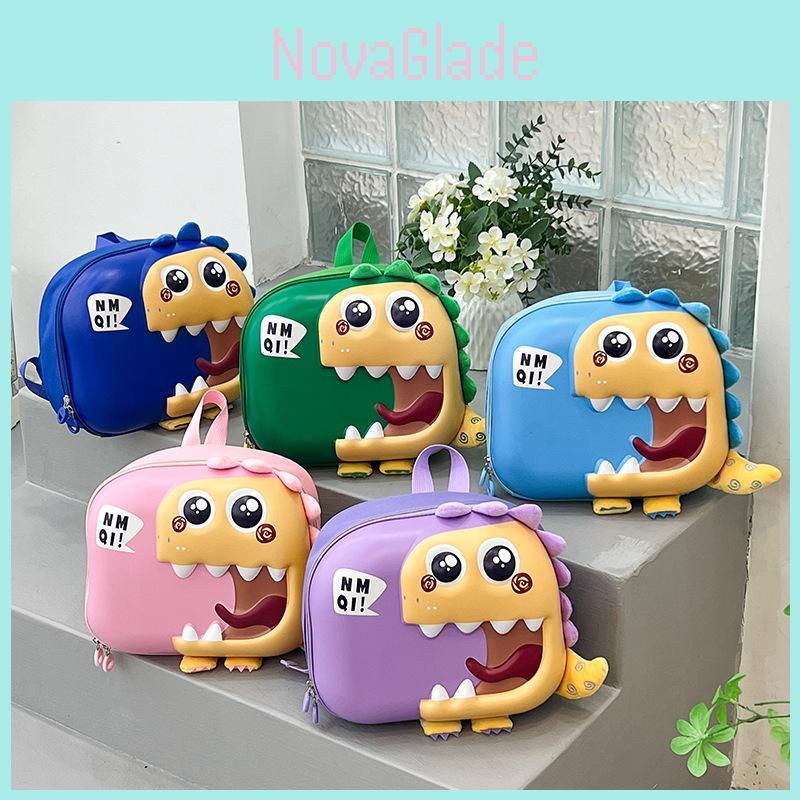 Cute Dinosaur Baby Shell Backpack Lightweight Cartoon School Bag For Kids In Pink Green And Blue