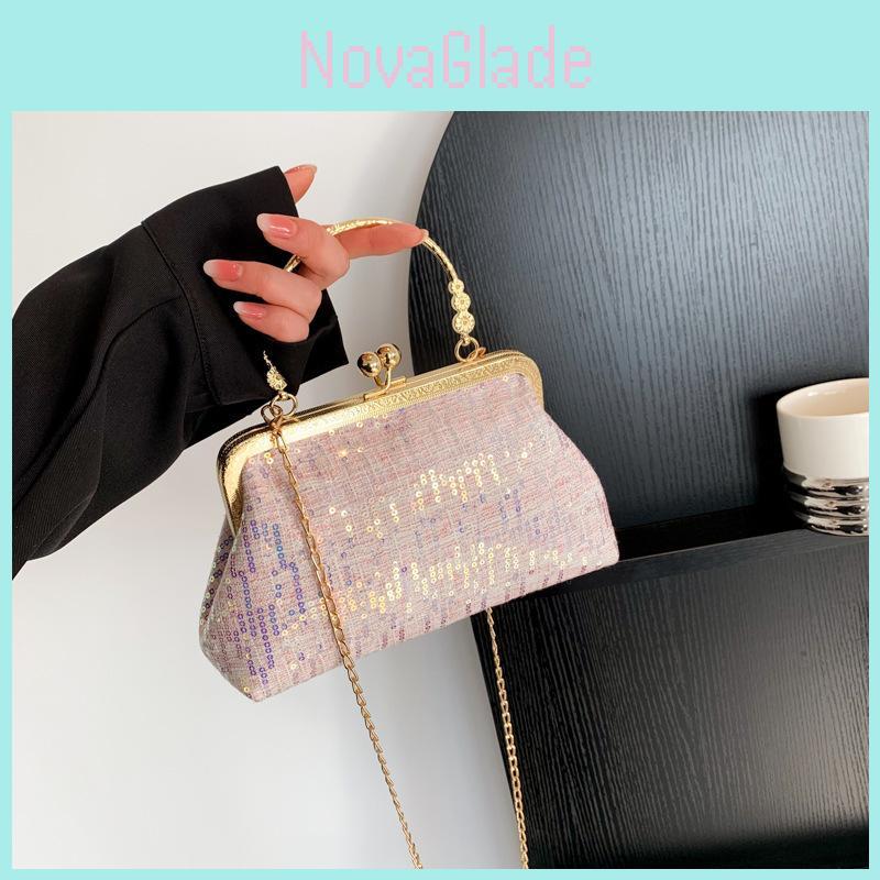 Stylish 2023 Spring New Korean Vintage Sequin Evening Handbag In Pink Purple White