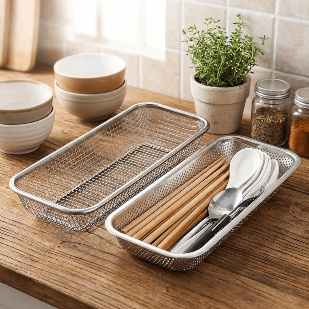 Mesh Filtering Chopsticks Storage Basket Anti-rust Chopstick Spoon Storage Box Sand Sifting