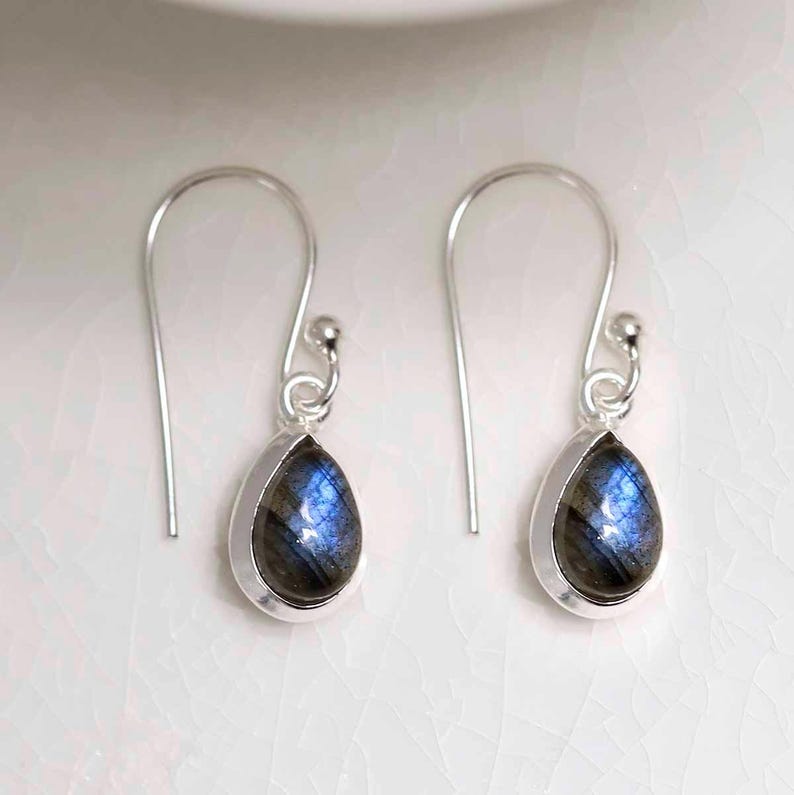 Solid 925 Sterling Silver Labradorite Gemstone Earrings Handmade Earrings Bezel Earrings