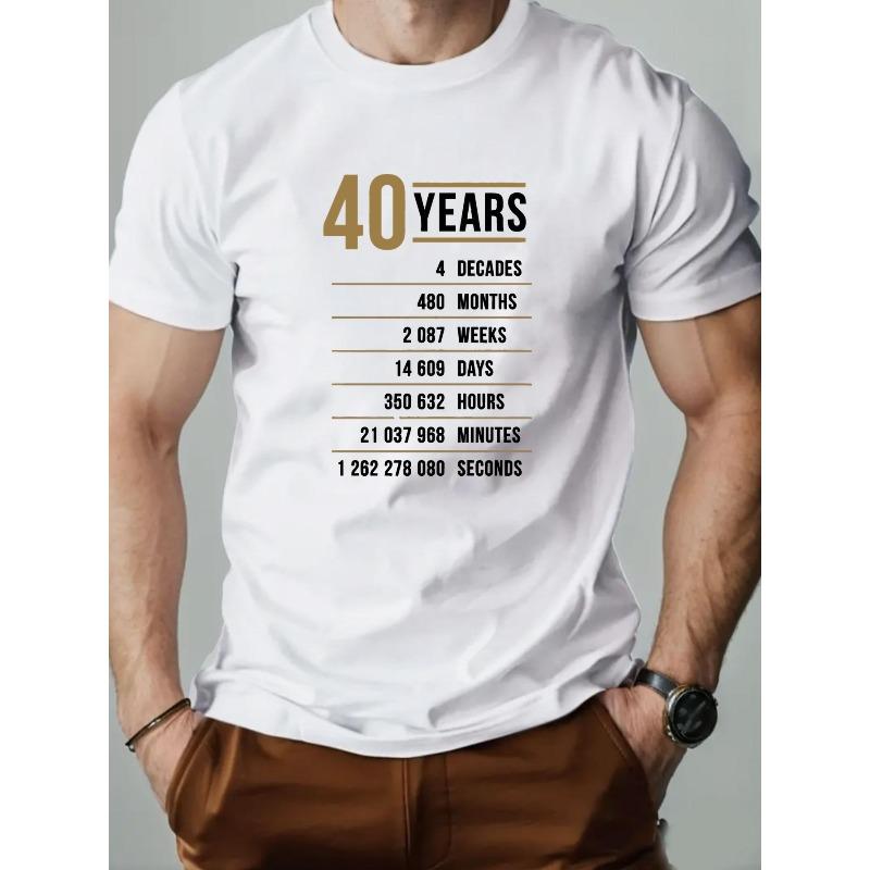 European Size Men'S 40 Years Celebration T-Shirt Crew Neck Short Sleeve Tee Regular Fit Summer Casual Top for Men