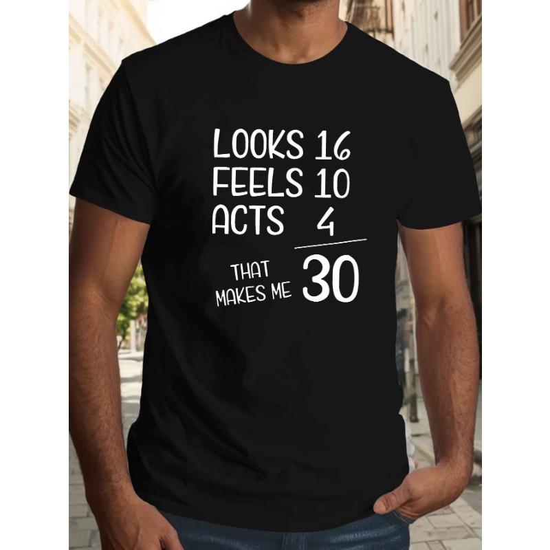 European Sizes Men's 30th Birthday Celebration T-Shirt - Casual Short Sleeve, Geometric Print, Round Neck, Machine Washable - Perfect for Summer