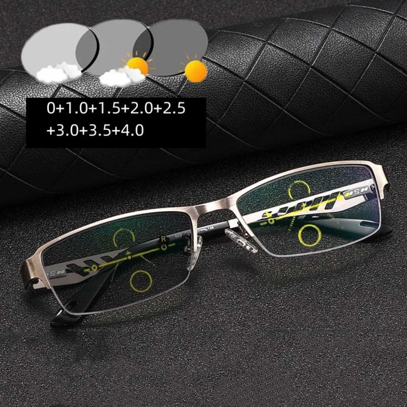 Fashion Business for Men Eyeglasses Frame Half Framed Titanium Alloy Photochromic Eyeglasses Outdoor Use Multifocal Color Changing Glasses