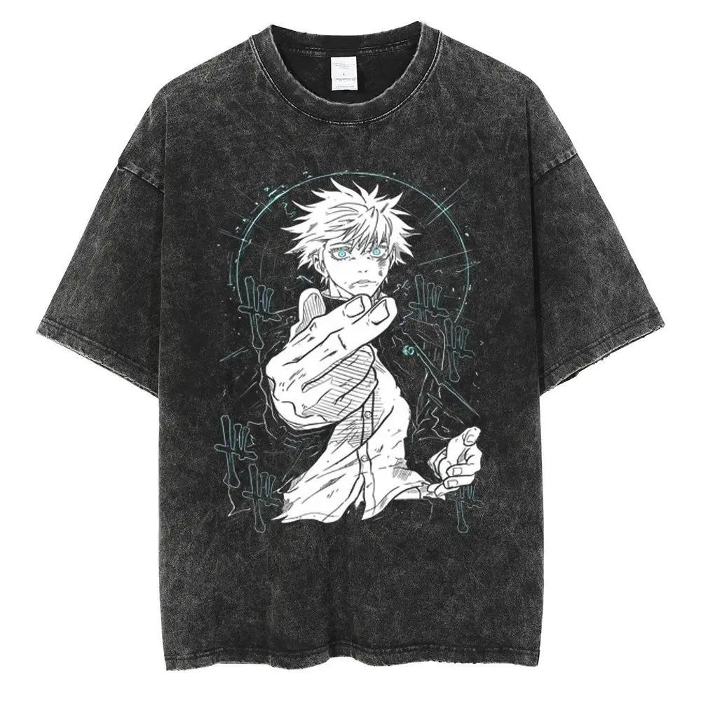 2026 Washed Jujutsu Kaisen Anime Tshirt Soft Cotton Crew Neck Loose Fit Short Sleeve Unisex Hip Hop Streetwear Oversized Tshirt