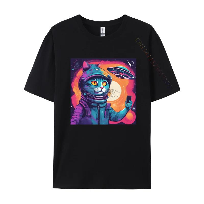 Cat Ufo Selfie Tshirt Kitten Lover Cat Tee Printed Tshirts For Men Cotton T Shirt Cool Faddish Casual