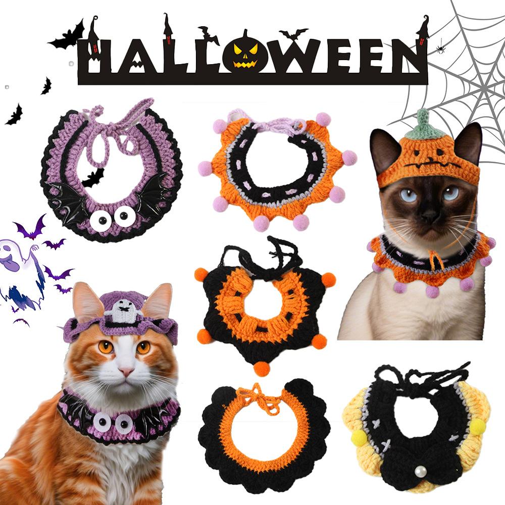 Halloween Pet Scarf Collar Bib Cat Dog Decoration Ghost Festival Hand Knitted Yarn Funny Dress Up Hat