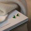 Cute Korean Earrings Heart Bling Zircon Vintage Dark Green Versatile Gold Color Earring for Women Fashion Jewelry 2024 New Gift