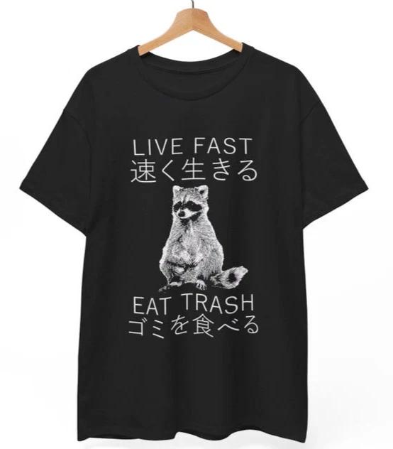 Live Fast Raccoon T-Shirt | Vintage Japanese Graphic Tee | Trash Panda Meme