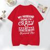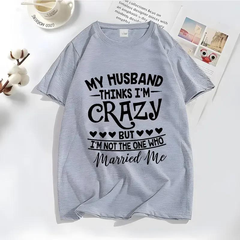 Funny My Husband Thinks Im Crazy Tshirts for Women Family Jokes Tshirts Funny Saying TShirts Anniversary Clothing Crazy Tshirt