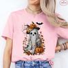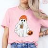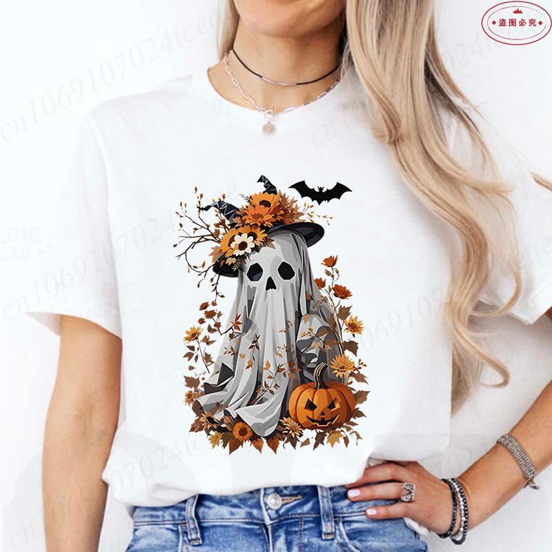 Halloween Boo with Pumpkin Print Womens TShirts Crew Neck TShirt Short Sleeve Casual Top for Spooky Season Womens Clothing