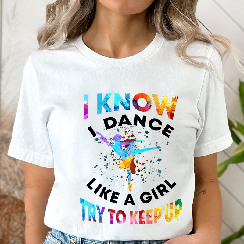 T Shirts for Women I Know I Dance Like A Girl Try To Keep Up Print Tops Classic Graphic Tops Fashion Summer Female Tees Shirt
