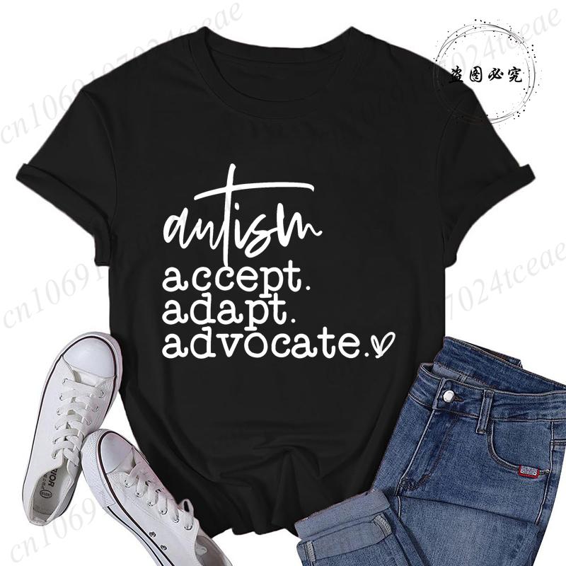 Autism Accept Adapt Advocate TShirts Female Funny T Shirts Awareness Fashion Graphic Tees Tops Women Clothing Short Sleeve