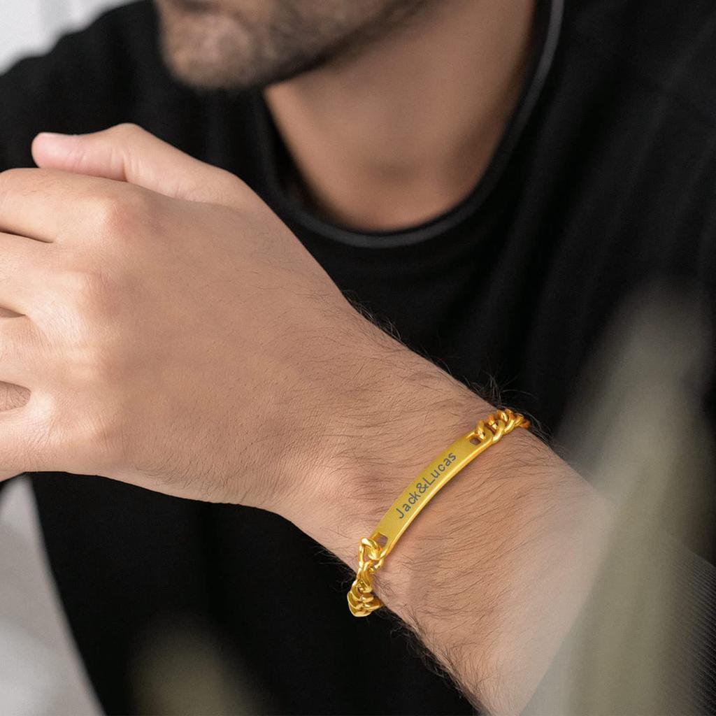 Men's Stainless Steel Bracelet Father's Day Gift Stainless Steel Curved Brand Lettering Black Cuban Chain Curved Brand Bracelet