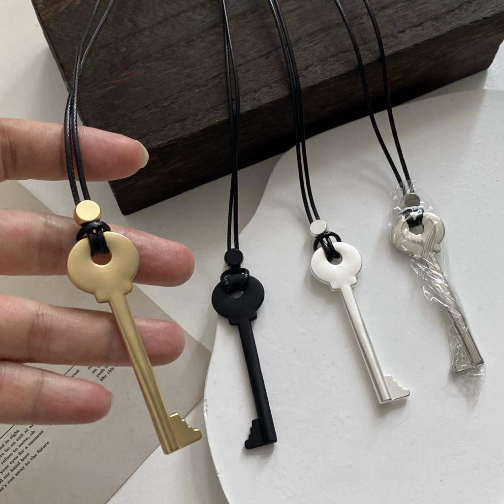 Metal Key Shaped Pendant Necklace For Women Girls Simple Long Wax Rope Sweater Chain Fashion Accessory New Gifts