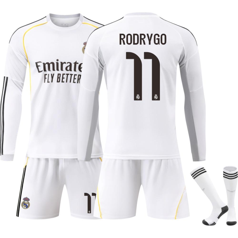 25-26 Real Madrid Home Long-sleeved Football Jersey for Kids and Adults RODRYGO #11