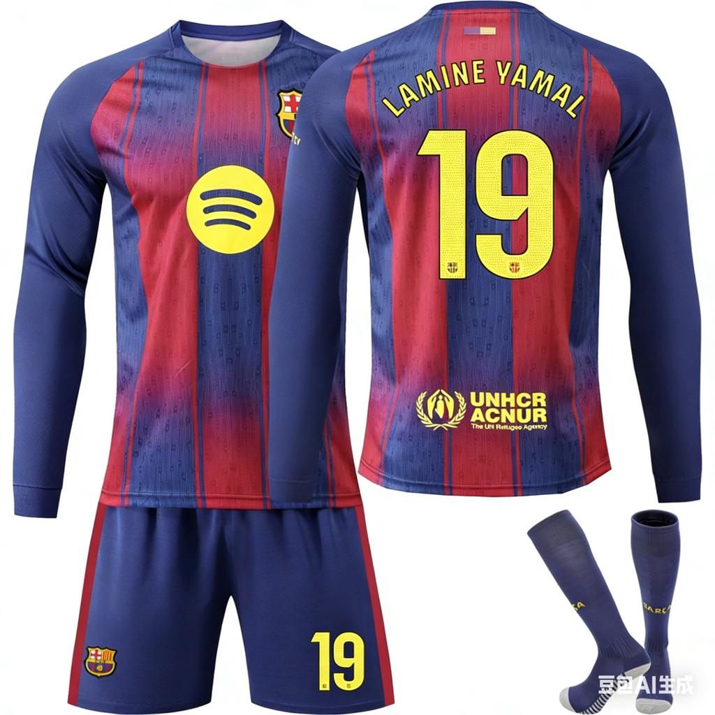 25-26 Barcelona Home Long-sleeved Football Jersey for Kids and Adults LAMINE YAMAL #19