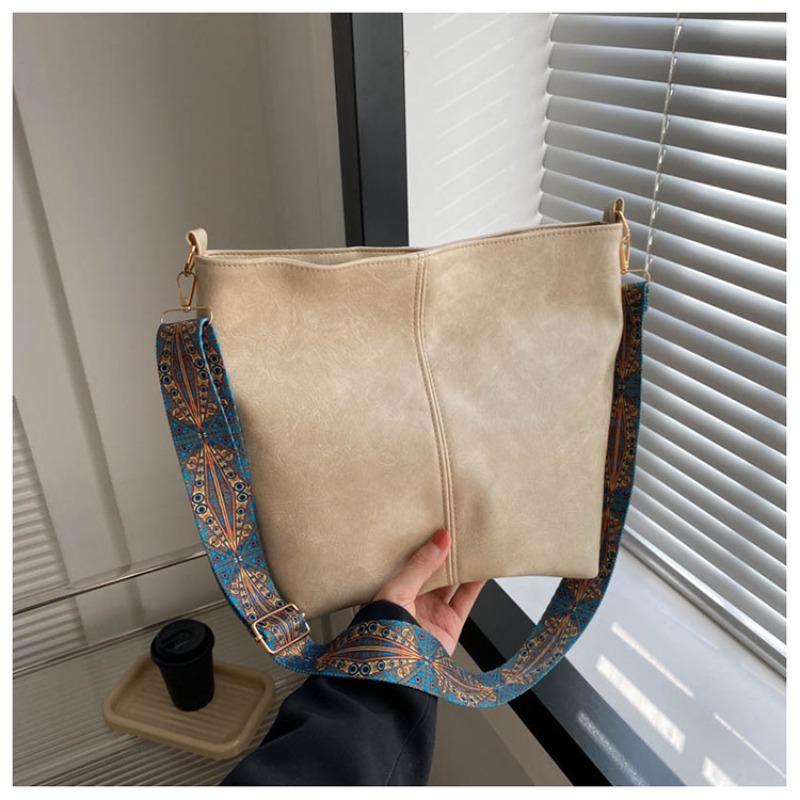 Large-capacity Bag Women's Autumn and Winter New Retro Broadband Shoulder Messenger Bag Premium Texture Commuter Bucket Bag