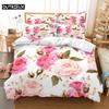Comforter Pink Rose Bedding Set Linens Quilt Comforter 3D Pillow Case Double Full King Queen Twin Single 3Pcs 2Pcs Home Texile