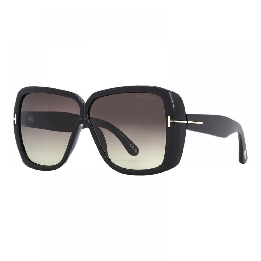 The Tom Ford Square Full Rim sunglasses feature a shiny black frame and gradient smoke lens. This stylish design makes it suitable for various occasions.