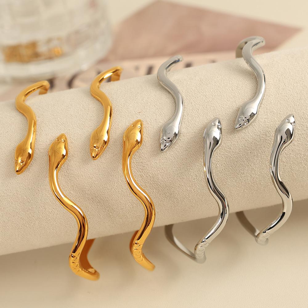 High-End Stainless Steel Spirit Snake Design Open Bracelet for Girls