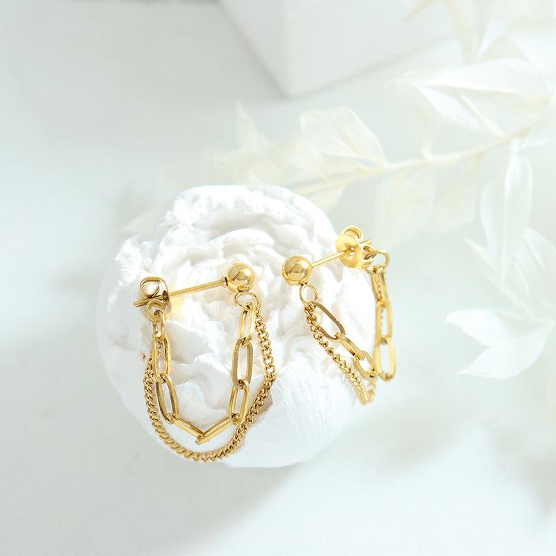Trendy Double Layer Chain Pendant Earrings – Unique Titanium Steel Design, Perfect Gift for Girls