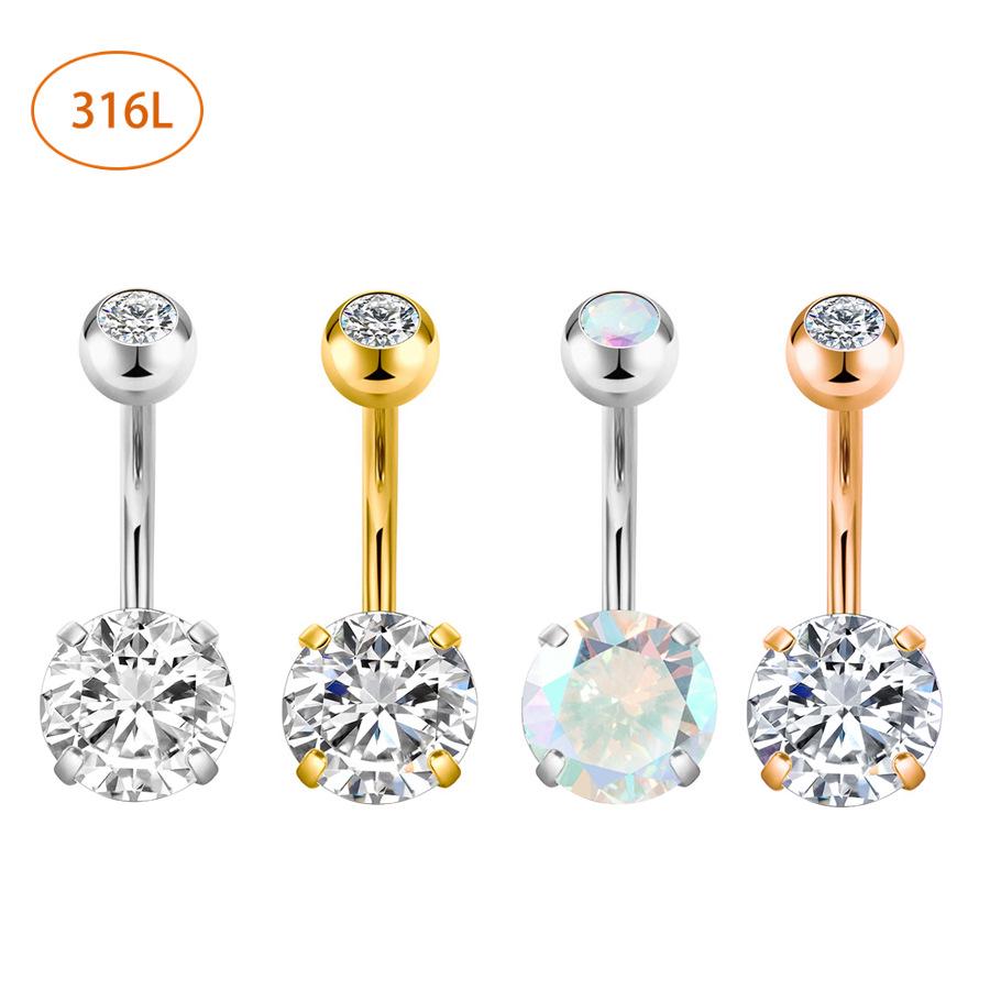 Round Double-Head Zirconia Stainless Steel Navel Ring