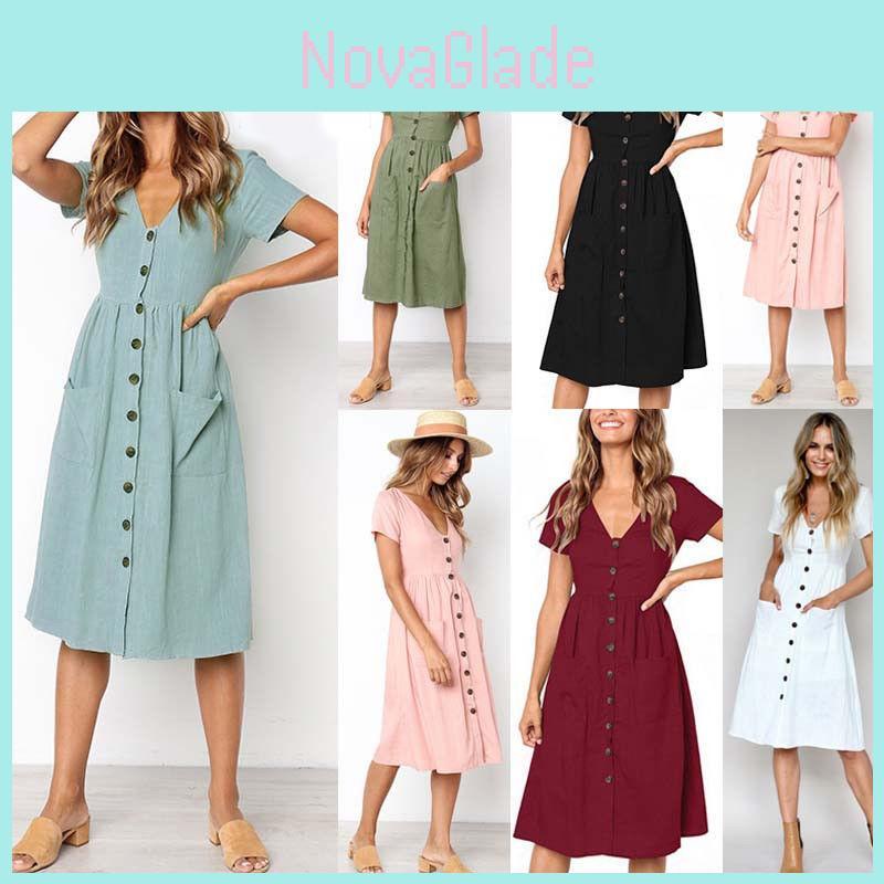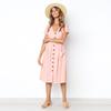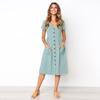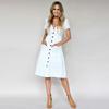 Nrj 2020 Hot Sale V-neck Button-up Short Sleeve Women's Dress With Pockets