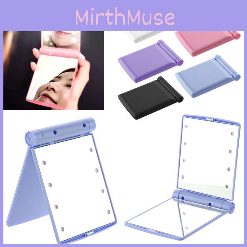 Makeup Cosmetic Folding Portable Compact Pocket Mirror With 8 Led Lights Lamps For Perfect Illumination