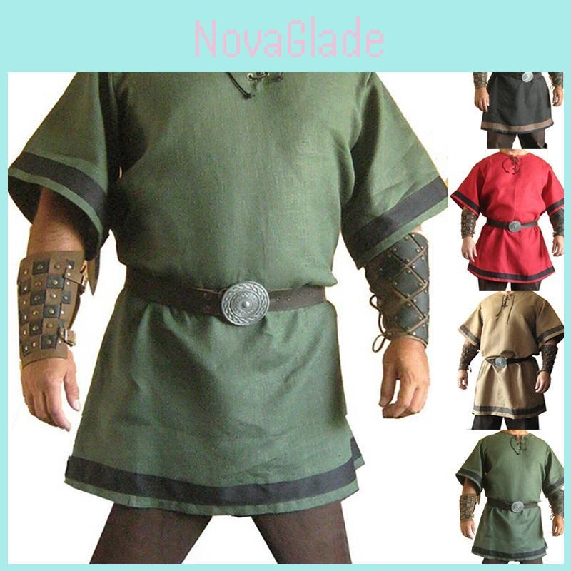 Medieval Norman Viking Costume Short Sleeve Tunic Top For Halloween Parties