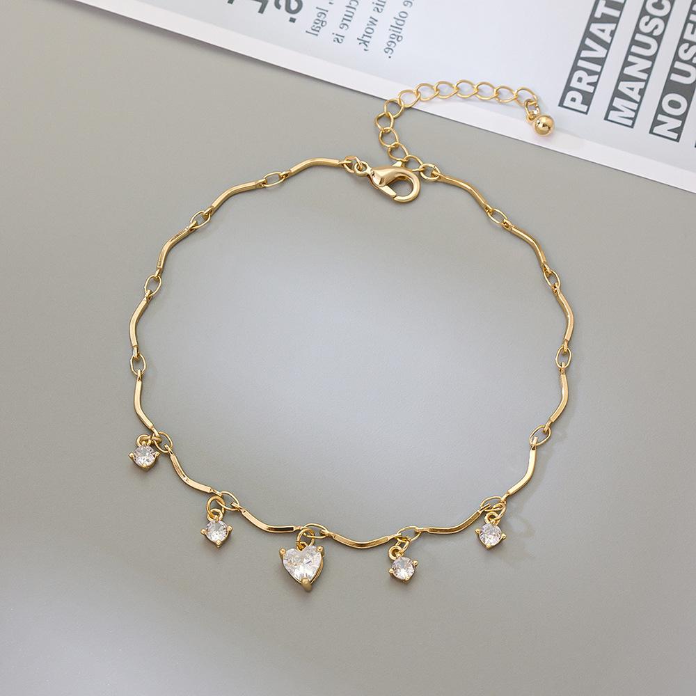 French Elegance Heart Zircon Anklet: Summer Beach Style, Simple & Versatile Foot Jewelry.
