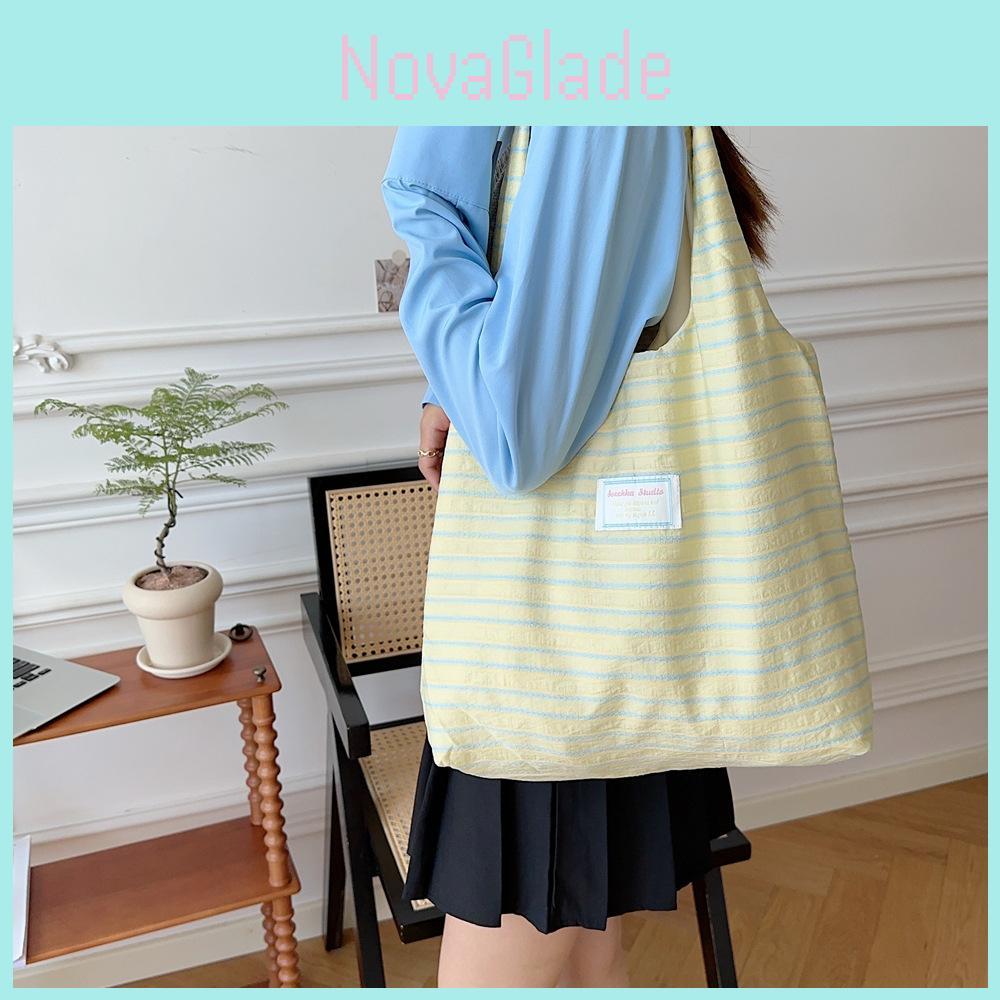 Stylish Striped Canvas Tote Bag For Women Spacious And Trendy Summer Shoulder Bag
