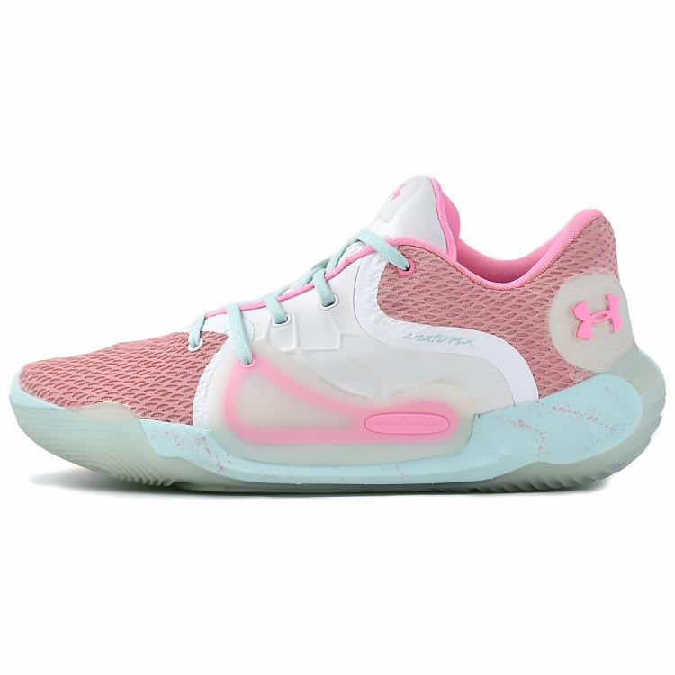 Under Armour Spawn 2 Slip Resistant, Abrasion Resistant, Breathable Mid Top Basketball Shoes Unisex Green Pink 3022626-104(Team96-)
