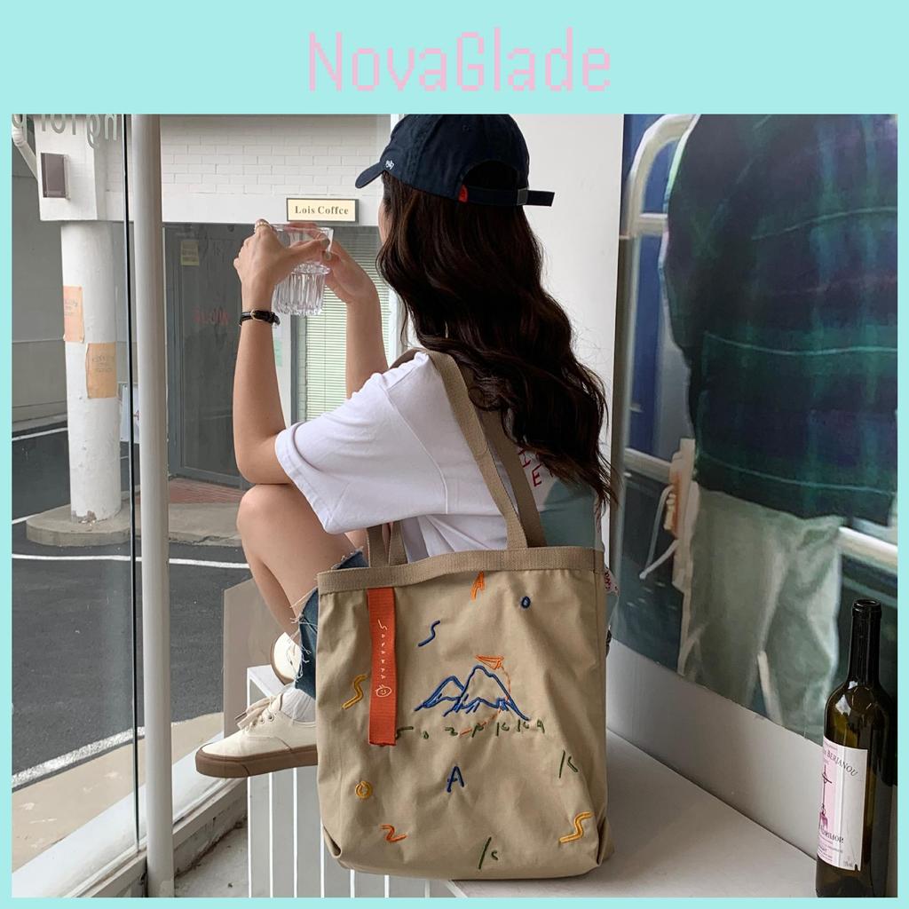 Trendy Canvas Tote Bag With Embroidery Roomy Shoulder Bag For Women And Students