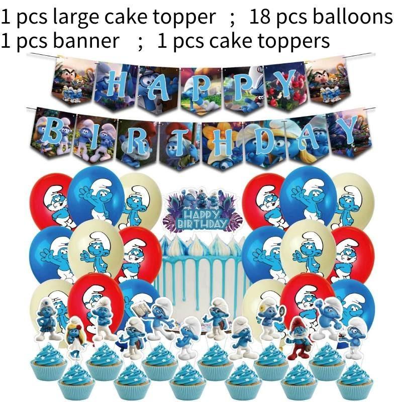 Blue Children Birthday Party Decoration Set Paper Flag Cartoon Cake Insert Balloon