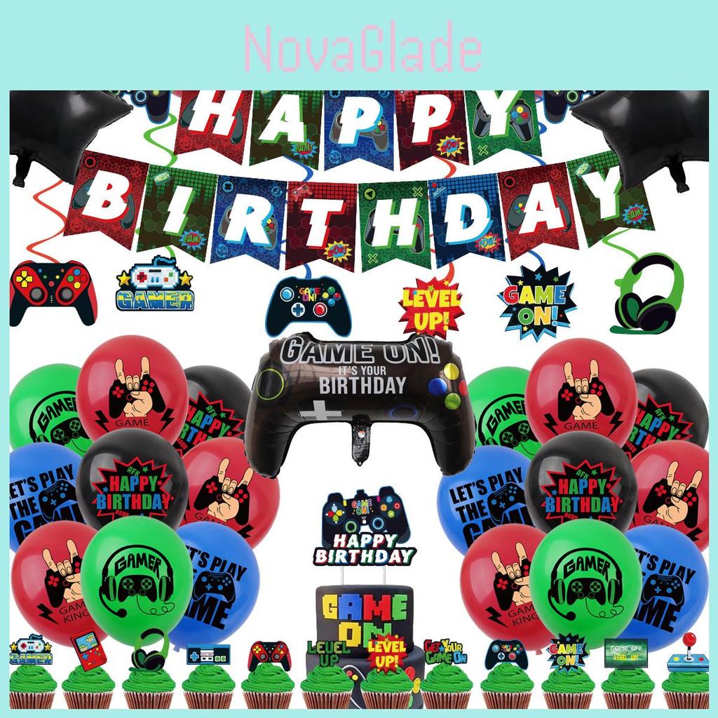 Game On Game Controller Foil Balloon Spiral Flag Set Party Decorations