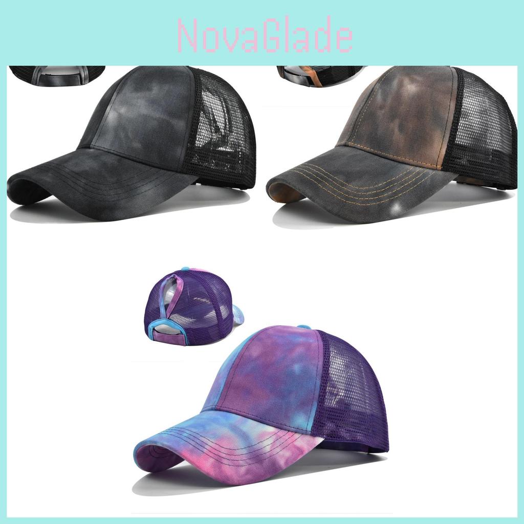 Fashionable Pure Cotton Tie-dye Ponytail Baseball Cap For Women Sun Hat With Adjustable Size