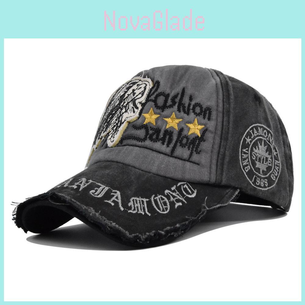 Vintage Skull Embroidered Baseball Cap Sun Hat Washed Cotton Curved Brim Adjustable Size