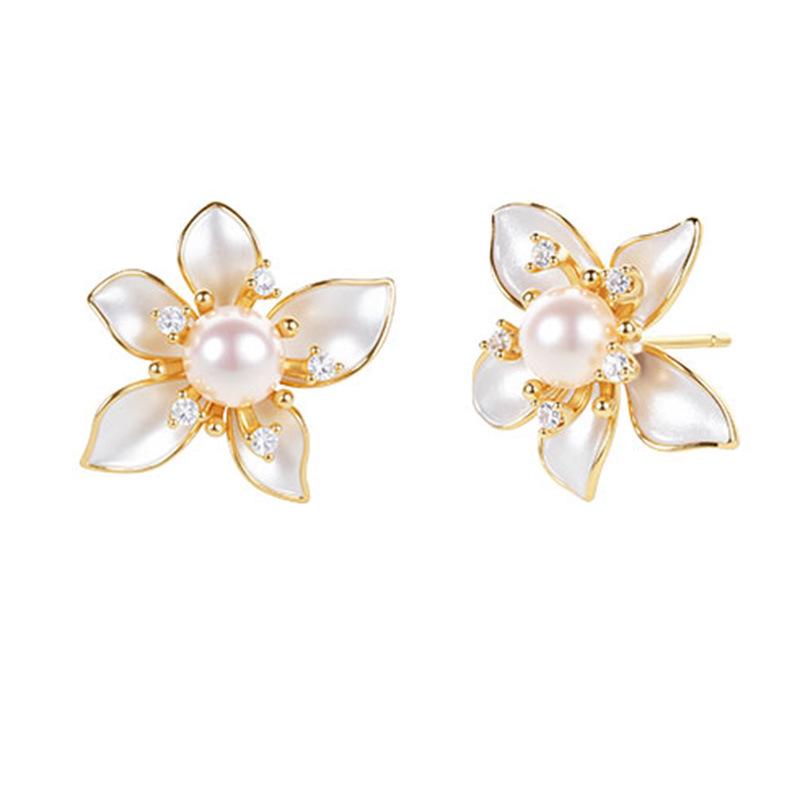 925 Sterling Silver Zircon Fairy Petal Earrings with Freshwater Pearl Design