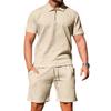 Men's POLO Shirt Suit Men's Casual Short Sleeve Suit Lapel T Shirt Textured Shorts Athletic Two Piece Set