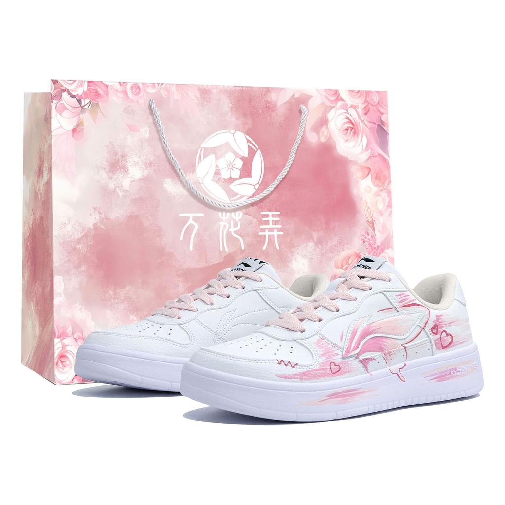 Li Ning Floating Boat Slip Resistant Abrasion Resistant Low Top Skateboard Shoes Women's Pink White AGCS420-6(Team1024-S-BOX)