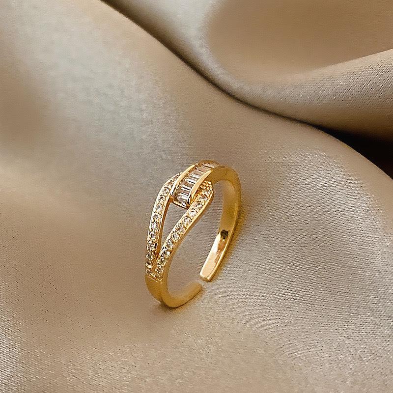 Korean Japanese Dongdaemun Knotted Zircon Women's Fashion Ring with Rhinestones