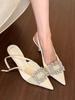 Women's Single Shoes with Heels Thin Heels Pointed Toe Rhinestones Heels Dress Banquet Leaking Heel French Sandalias De Mujer