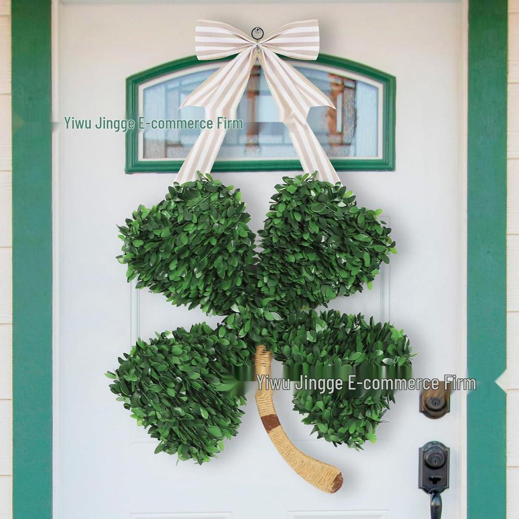 St. Patrick's Day Four-Leaf Clover Wreath: Lucky Green Decor for Doorways, Fireplaces, and Walls