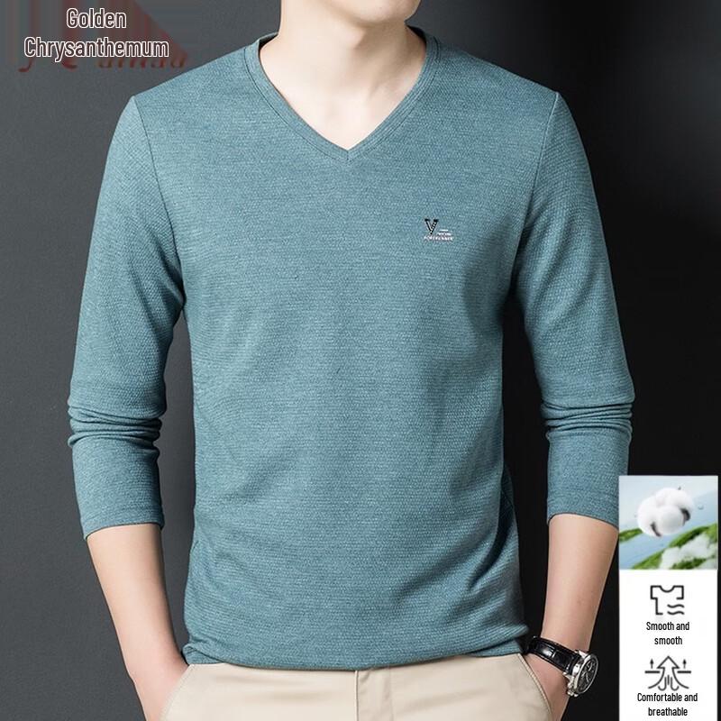 Men's Solid Color V-Neck Long Sleeve T-Shirt